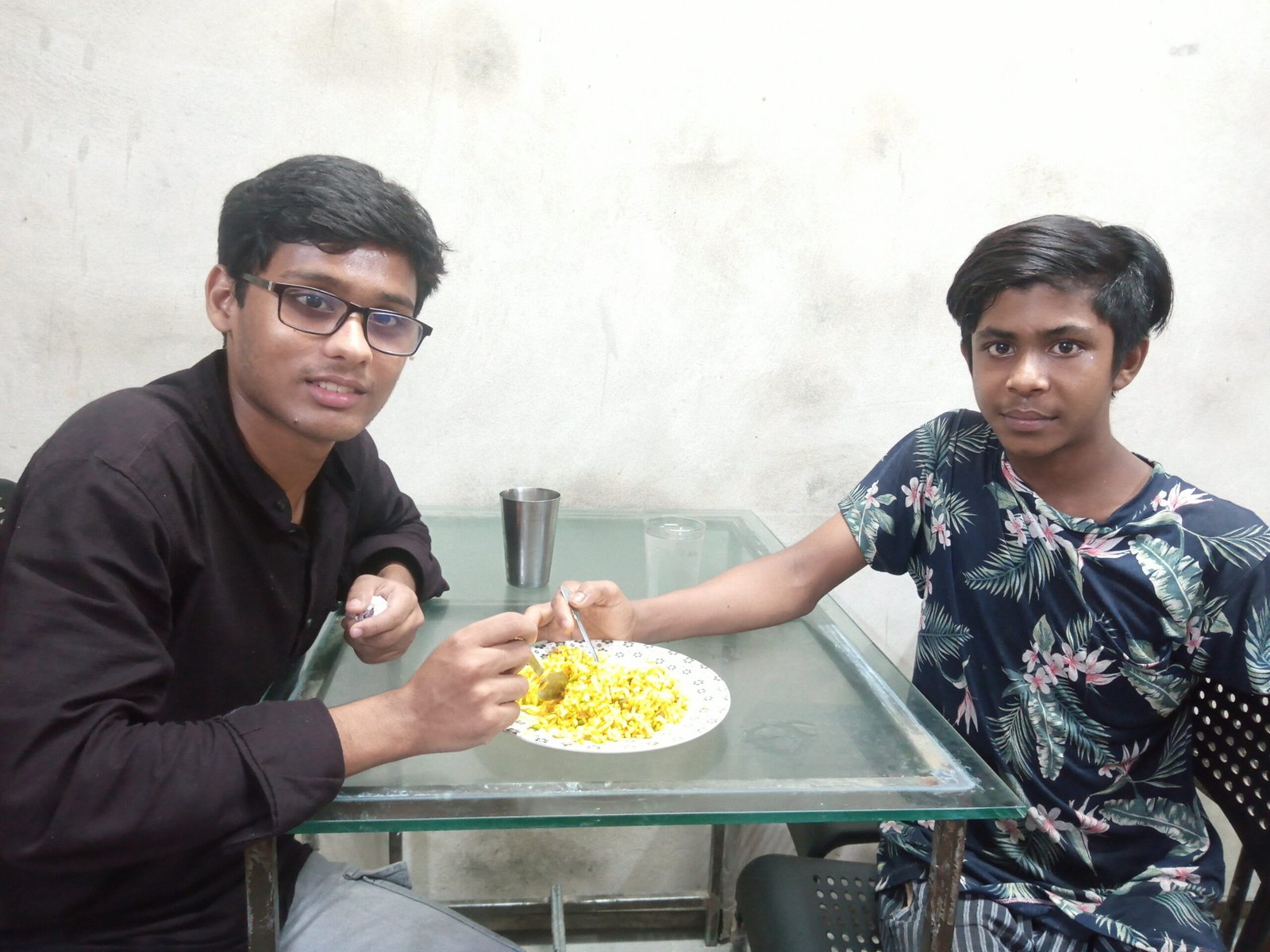 আমি নিজেও ওঠার প্রস্তুতি নিচ্ছি, এমন সময় দেখি গ্লাসবয় (ছেলেটা) একটা প্লেটে ঝালমুড়ি নিয়ে এসেছে। প্লেটে দুটো চামচ। বলল, “ভাইয়া, আপনি খাওয়া শুরু করেন।” জিজ্ঞেস করলাম, “তুমি খাবা না?” উত্তর দিল, “খাব।” তখন সে হোটেলের প্লেট ধুচ্ছিল, আমি অপেক্ষা করলাম।